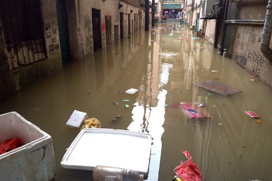 通往怀宝镇的公路已被洪水淹没(图片来源:三防镇政府办)