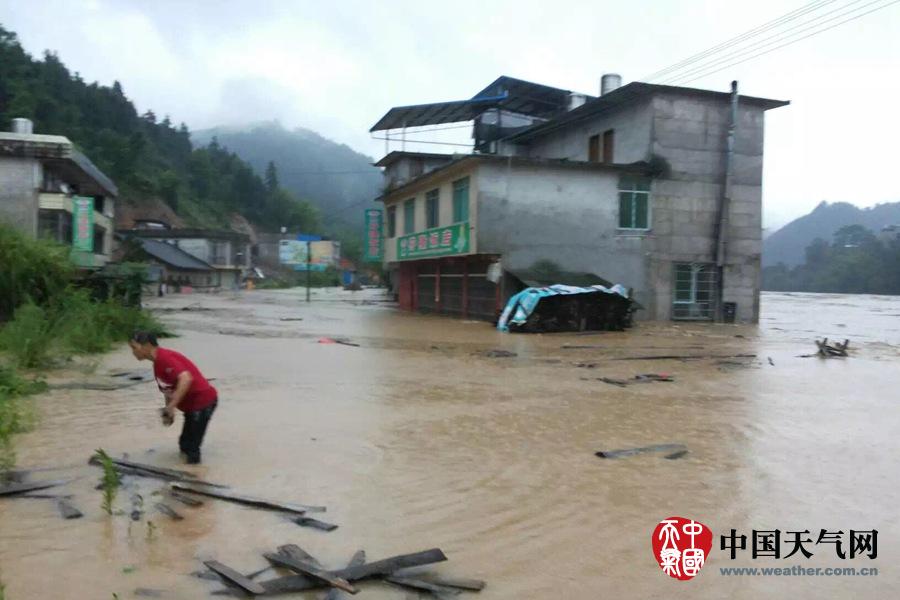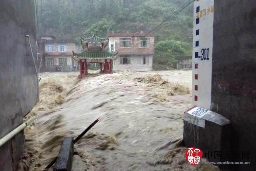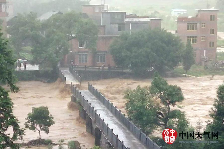 汪洞乡产儒村洪水漫过桥面(图片来源:三防镇政府办)