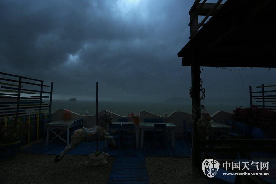 今天下午14时,涠洲岛乌云密布,天色变暗(摄影:涠洲岛时光盒子客栈阿杜)