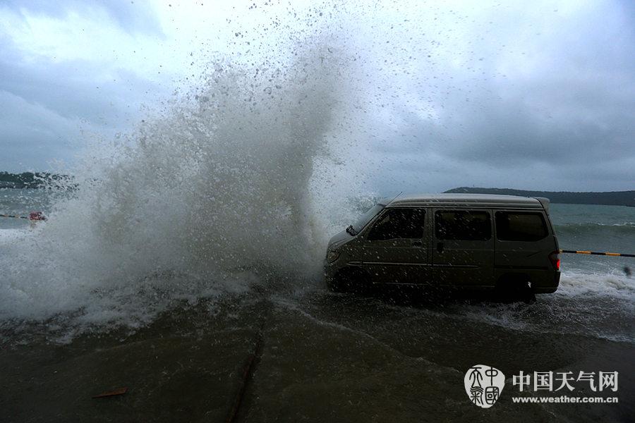 一辆面包车冒险冲向大浪(摄影:涠洲岛时光盒子客栈阿杜)