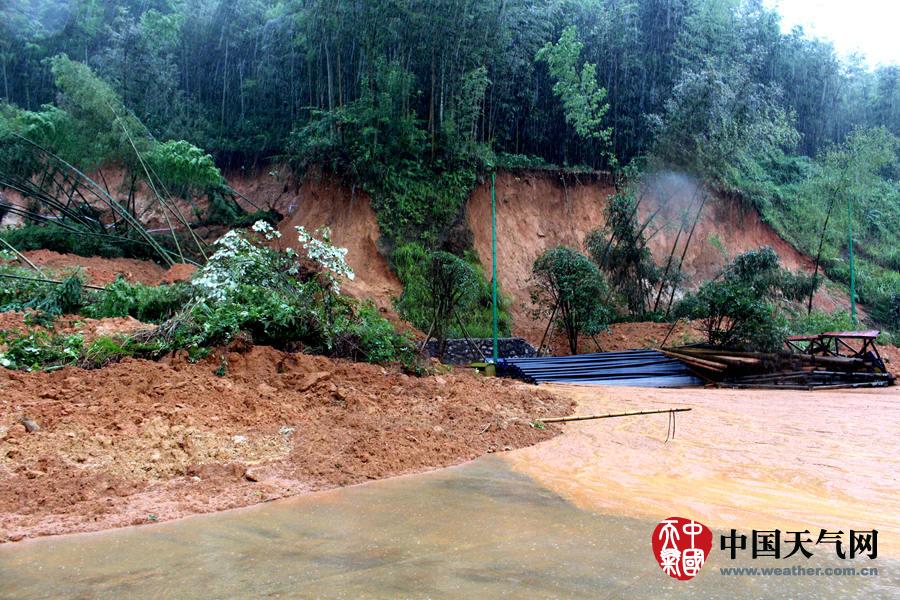 强降水导致山体滑坡。(摄影:蒋小芳)