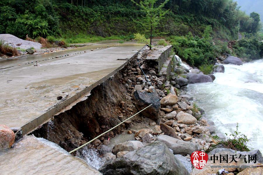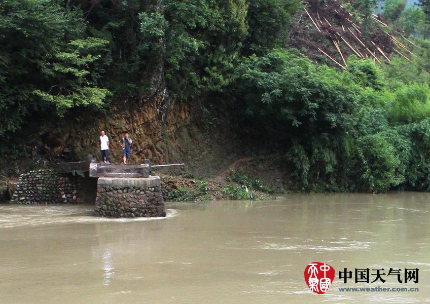 菜木塘村一桥梁被冲毁,影响群众日常出行。(摄影:蒋小芳)