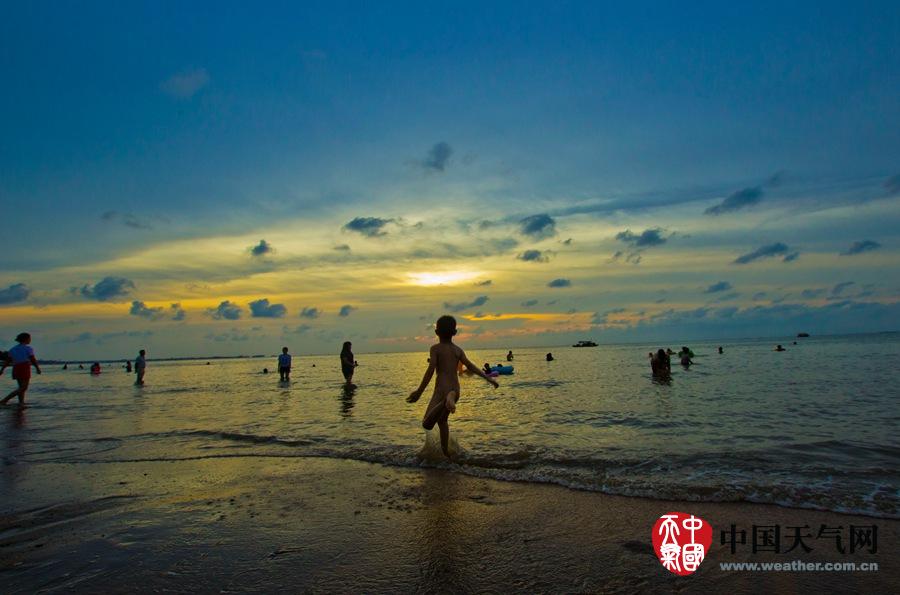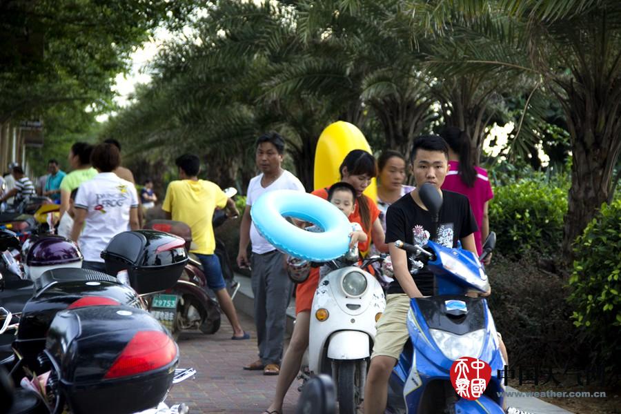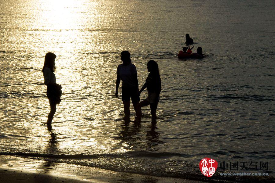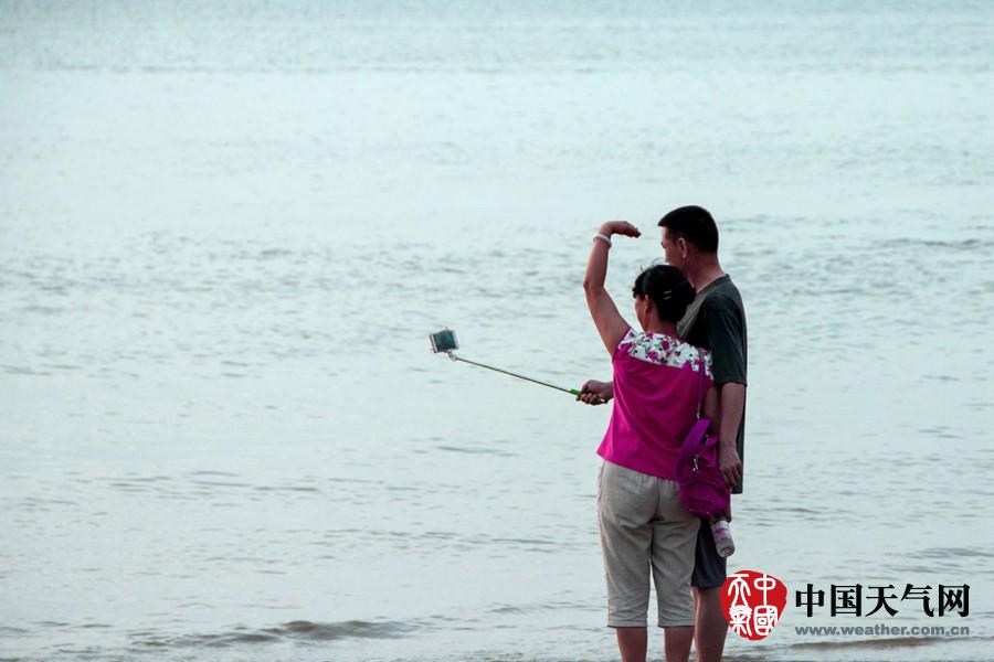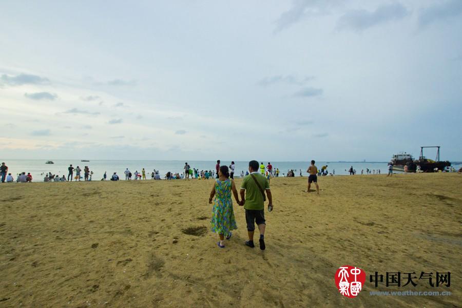 傍晚人们陆陆续续来海边游玩。(摄影:卢威旭)