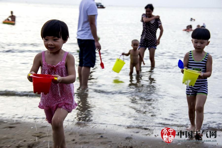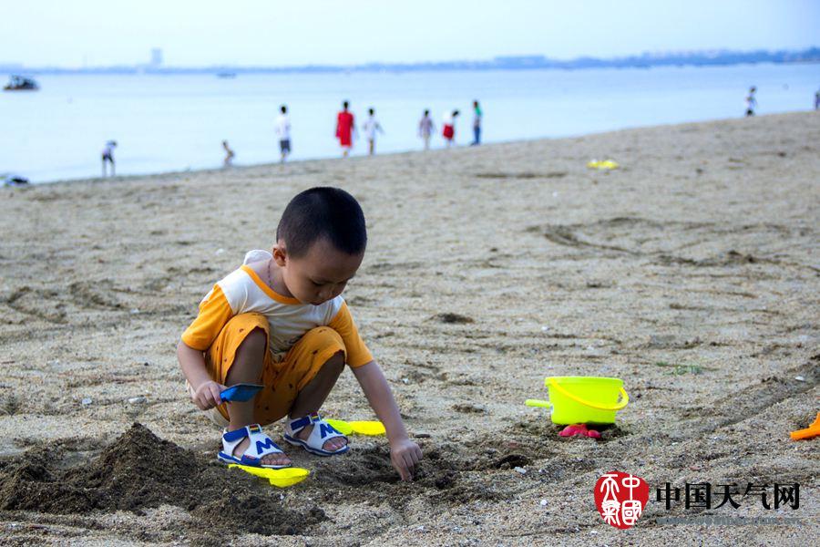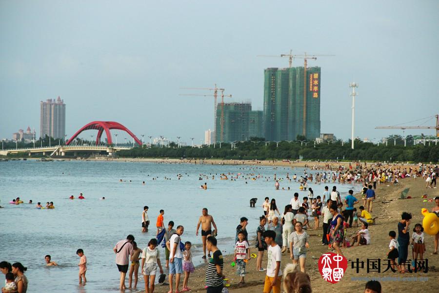 海滩上聚满了游玩的人。(摄影:卢威旭)