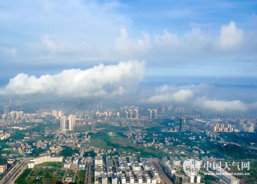 钦州市区披上了云雾“白纱”盛装。(摄影:李斌喜)