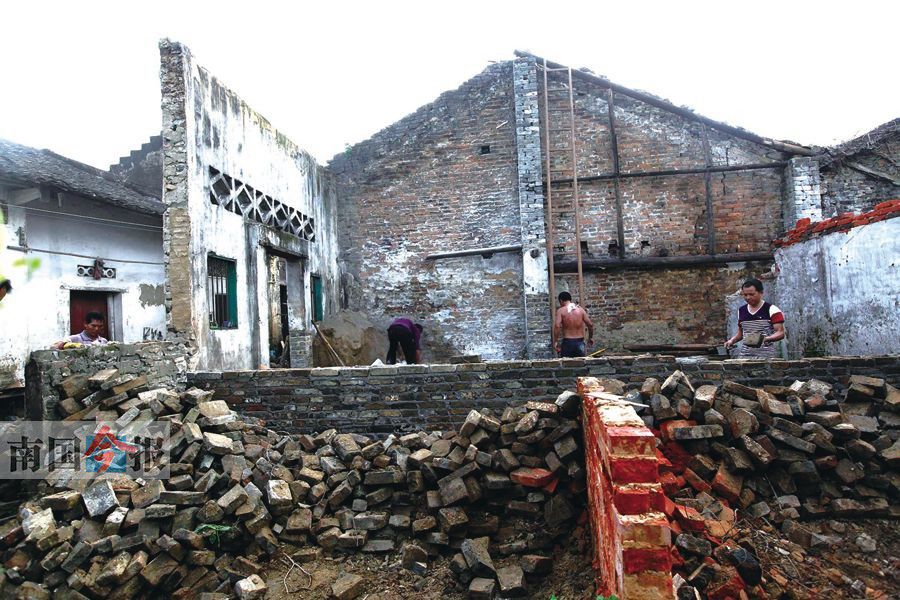 古镇居民正在用老砖对已经残破的老屋进行维修。(摄影:张存立)