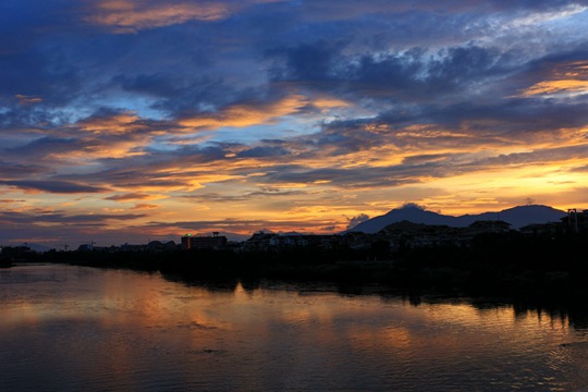 田阳:玉凤镇百耀屯的唯一村路被淹,村民隔岸相望(摄影:王春娟)