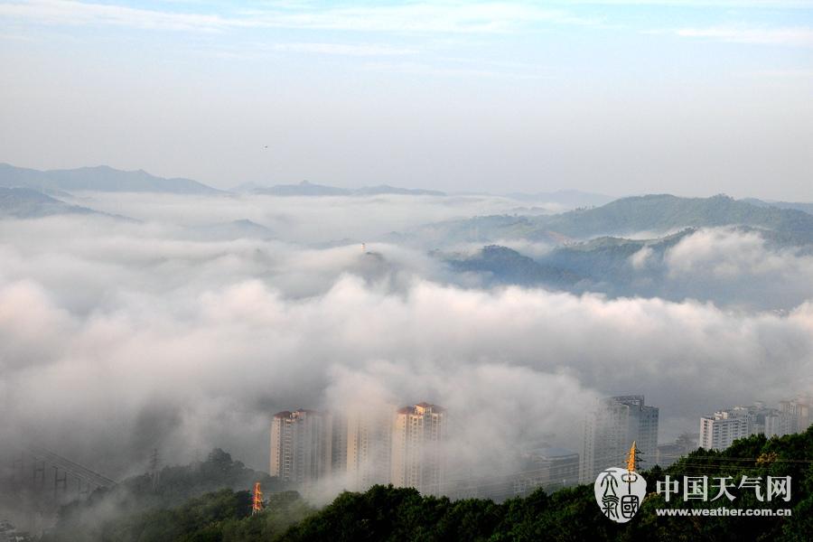 梧州市区云雾缭绕(摄影:梁瑞乾)
