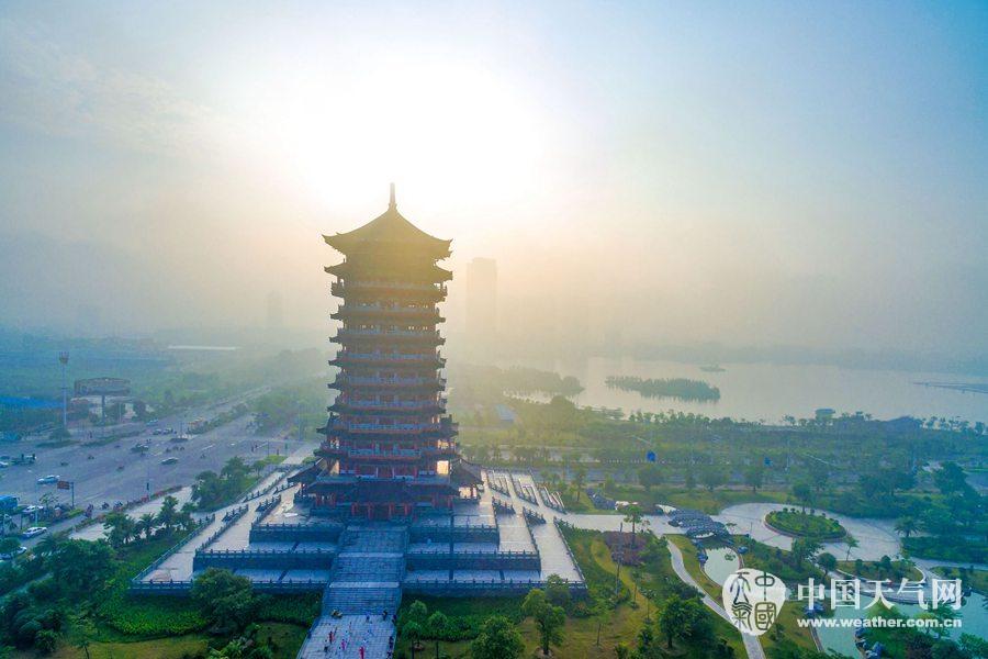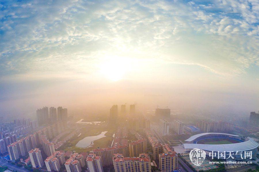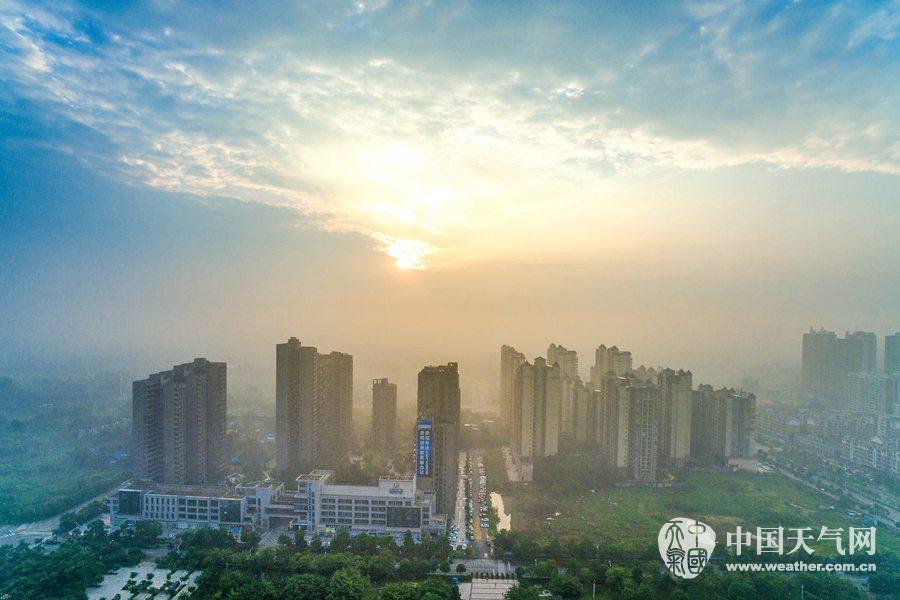 在薄雾的衬托下的钦州晨曦(摄影:李斌喜)