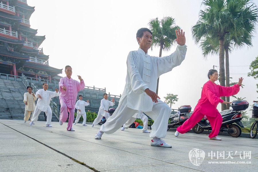 好天气助力早起晨练的人群(摄影:李斌喜)