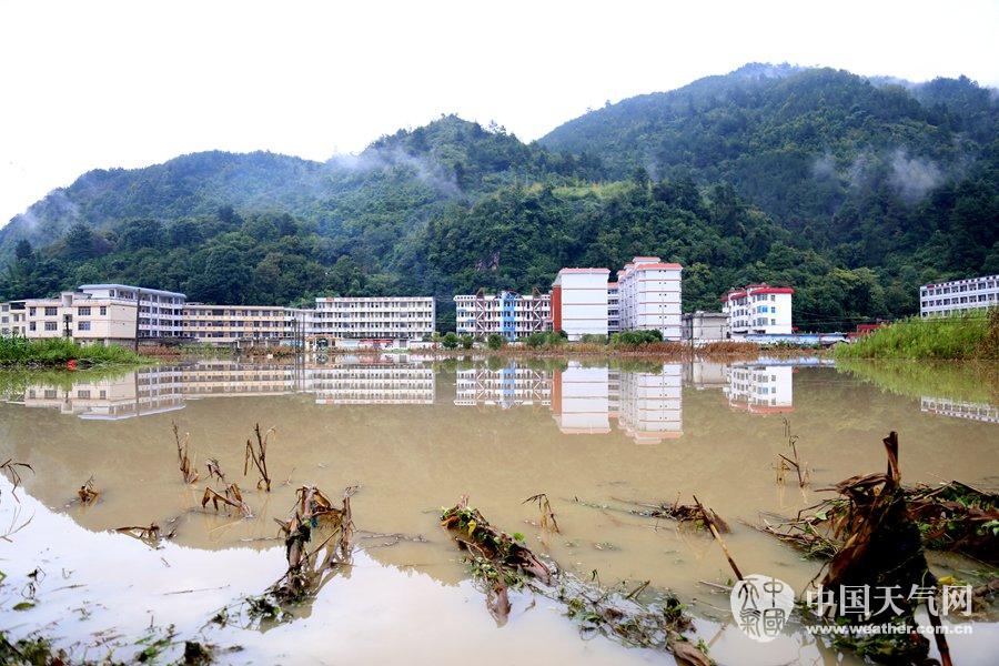 开学第一天,城关镇第二中学出现内涝,影响学生上课。(摄影:吴其仁)