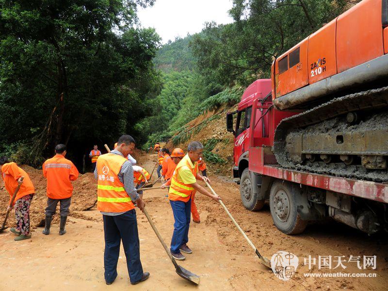 南丹至天峨路段塌方,公路局人员正在进行清理。(摄影:吴其仁)