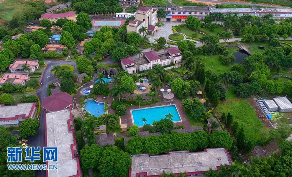 航拍以温泉、养生、旅游等为主题的陆川九龙山庄。(摄影:刘钦明)