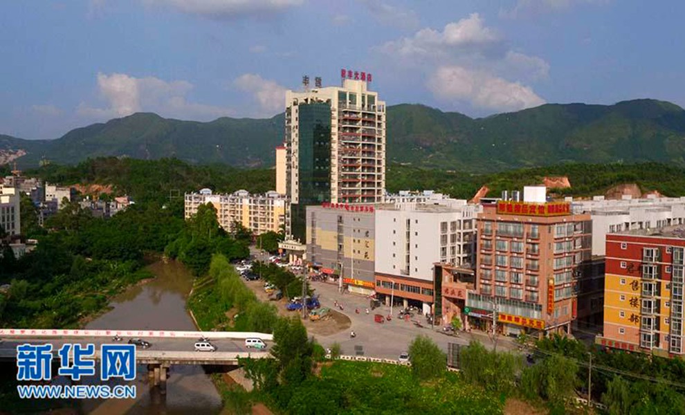 航拍以温泉、养生、旅游、客家文化体验等于一体陆川世客城。(摄影:刘钦明)