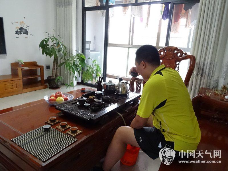 喝杯绿茶,消除疲劳。(摄影:刘金裕)