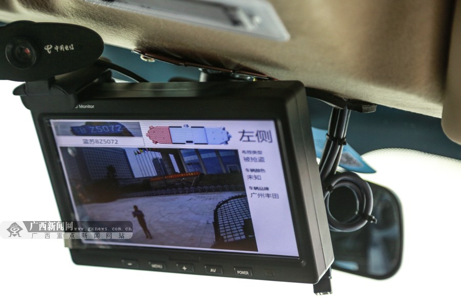 通过车载视频记录取证设备,该武装巡逻车可自动识别周围可疑车辆。 广西新闻网记者 黄河畅摄
