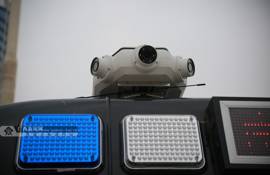 该车型上配备的远程催泪器喷射距离可达20米。 广西新闻网记者 黄河畅摄