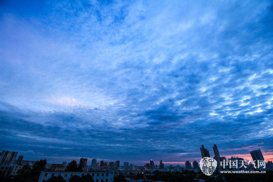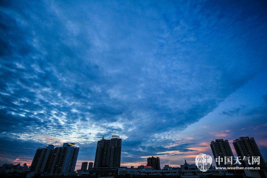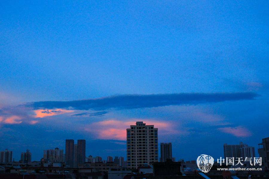 余晖下,云是彩色的。(摄影:林健文)