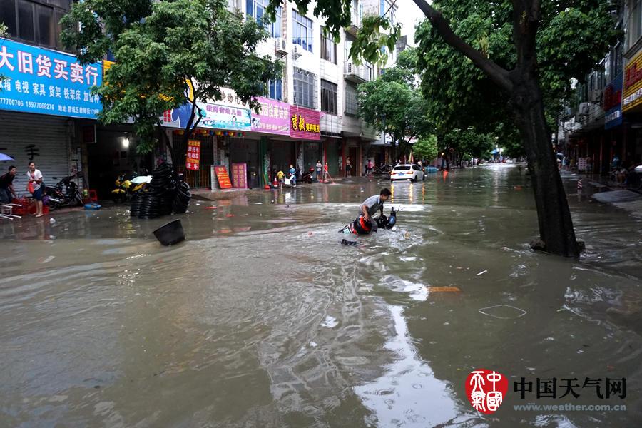 市民冒水骑车不慎摔倒(摄影:吴兴高)