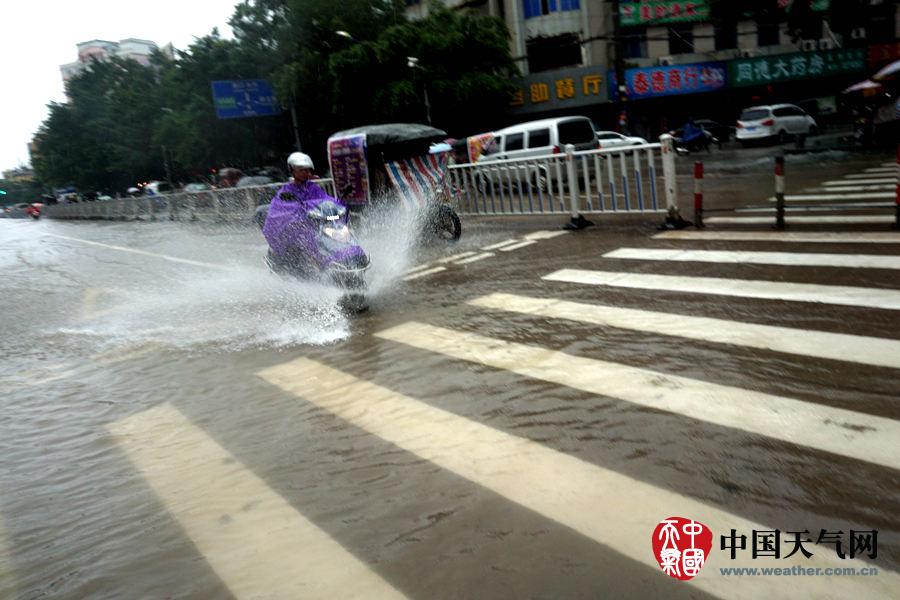 防邕路市民开电动车水花四溅。(摄影:吴兴高)