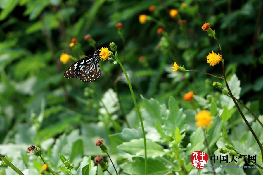 岸边山石上野花盛开,蝴蝶嘻戏。(摄影:郑武超)