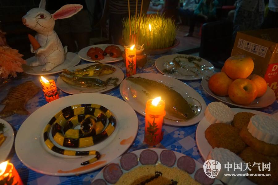 精美的贡品吸引了不少游客拍照留影(摄影:陈丽娜)