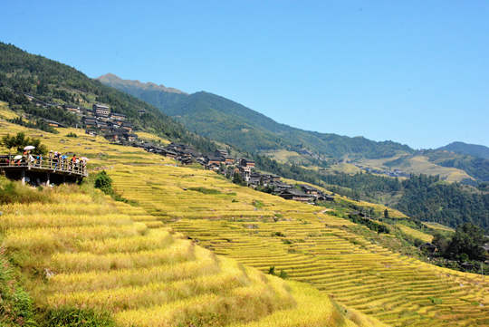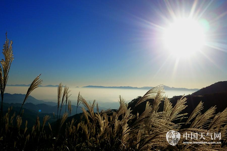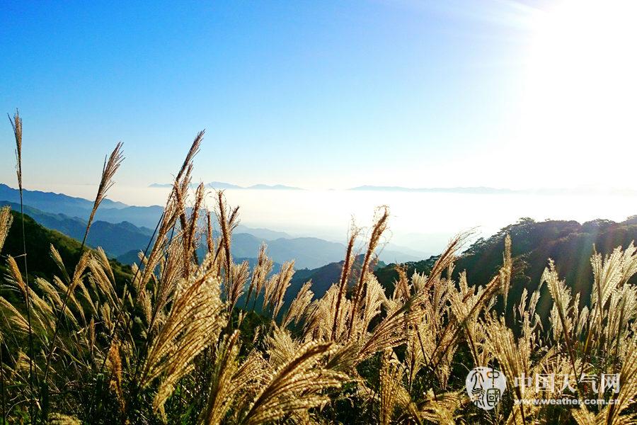 山上一束束的芦苇在阳光下闪着金光(摄影:许红)