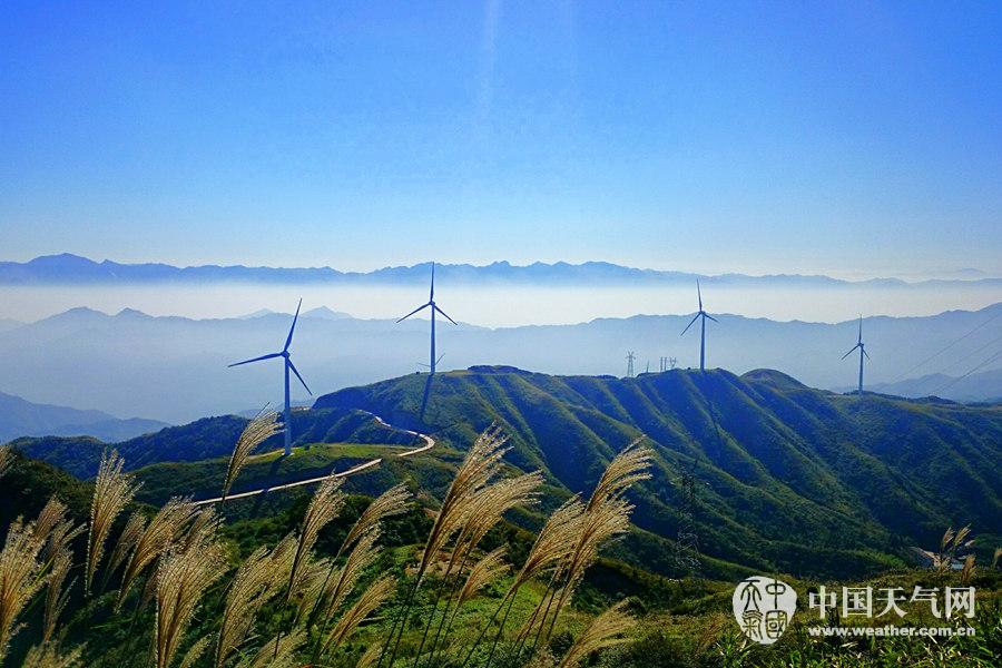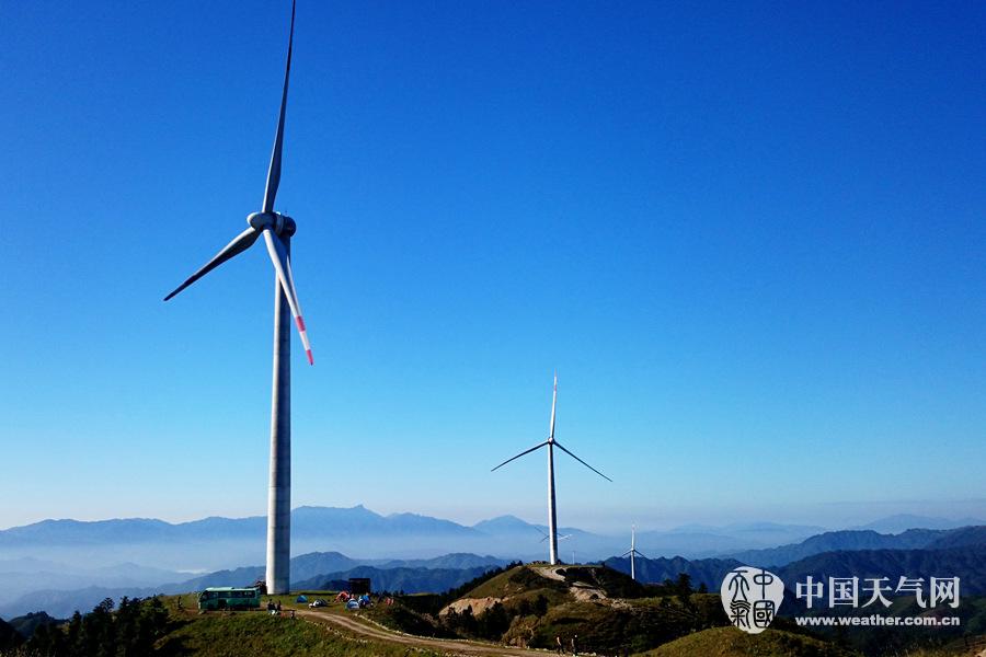 山顶的风车似乎在等风来(摄影:许红)