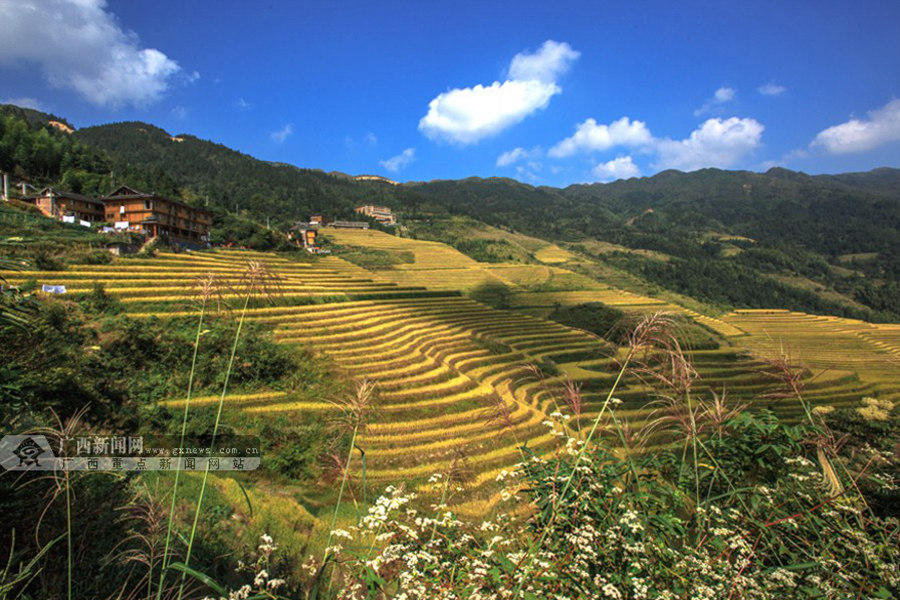 10月稻穗金黄时正是龙脊梯田的旺季。广西新闻网记者 黄河畅摄