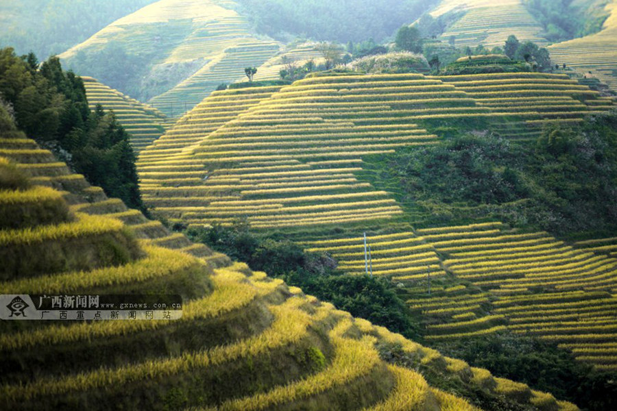 层层叠叠,高低错落的梯田美不胜收。 广西新闻网记者 黄河畅摄