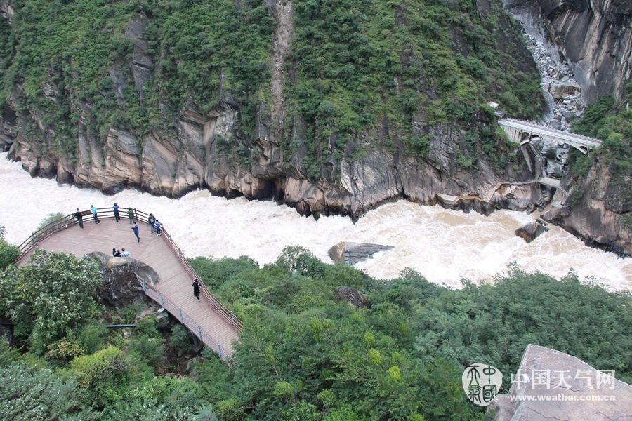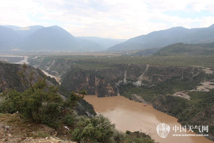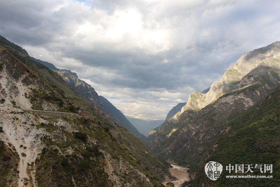 俯瞰虎跳峡,金沙江在峡谷中奔流不息,气势磅礴。(摄影:周冬静)