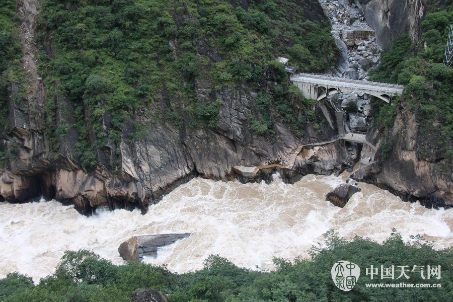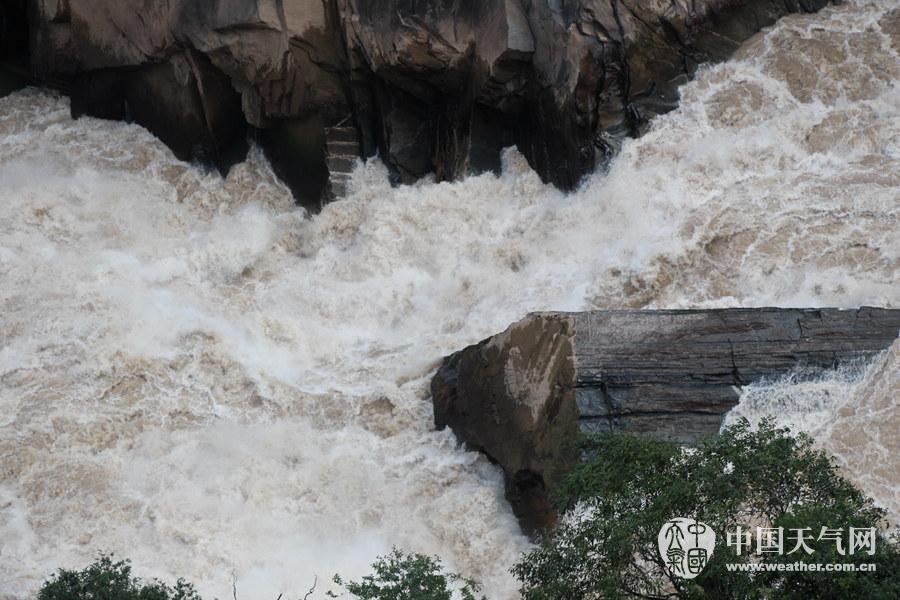 金沙江水与虎跳石搏击,气势磅礴。(摄影:周冬静)