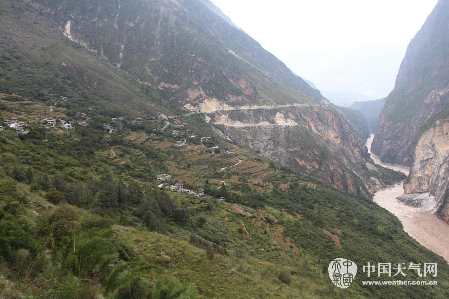 虎跳峡附近的坝上民居群。(摄影:周冬静)
