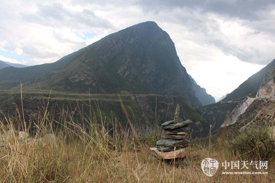 游客留在虎跳峡岸上的玛尼堆。(摄影:周冬静)