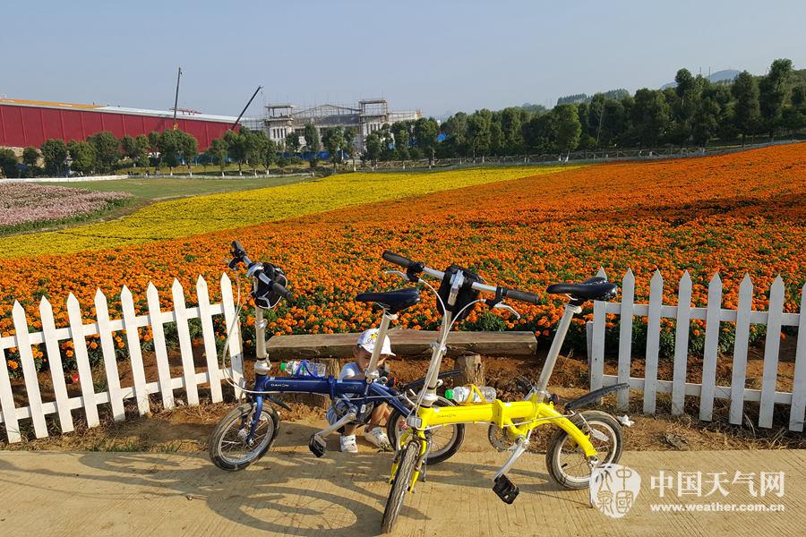 骑上自行车在花海里浪漫畅游。(摄影:陈嫦)