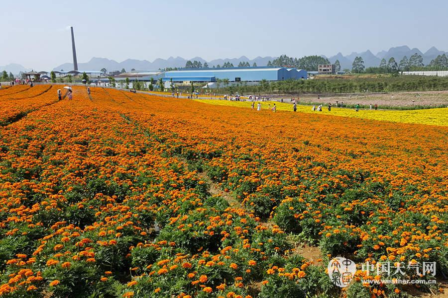 竞相绽放的万寿菊如流金的云霞。(摄影:陈嫦)
