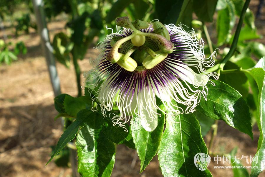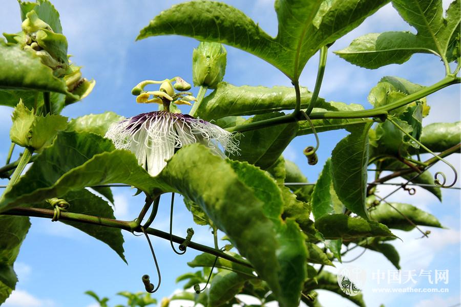 百香果的花白色中泛点紫,看着很是素雅(摄影:王永明)
