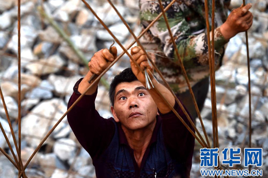10月30日,广西大化瑶族自治县七百弄乡弄雄村的村民在修建水柜。(摄影:黄孝邦)