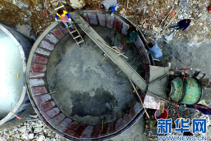 10月26日,广西大化瑶族自治县七百弄乡弄雄村的村民在修建水柜。(摄影:黄孝邦)