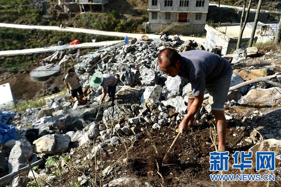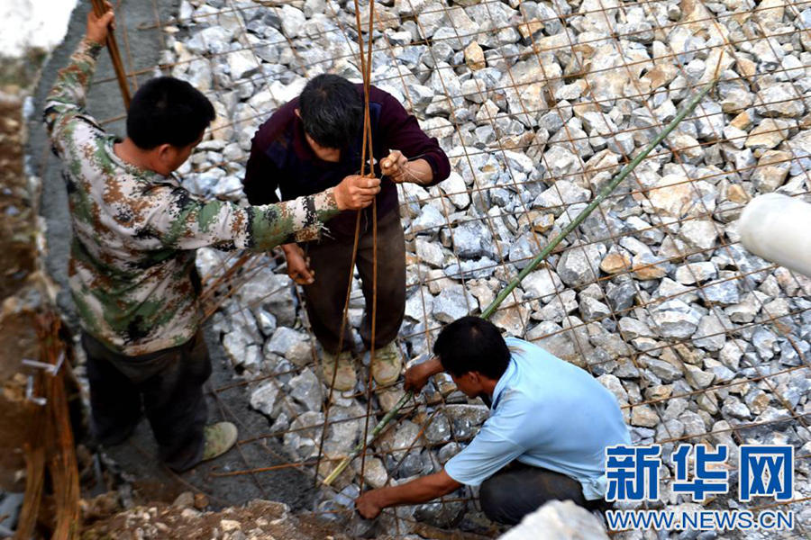 10月28日,广西大化瑶族自治县七百弄乡弄雄村的村民在修建水柜。(摄影:黄孝邦)