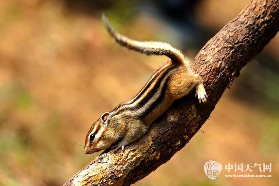 花栗鼠能敏捷地爬上树梢(摄影:陶运明)