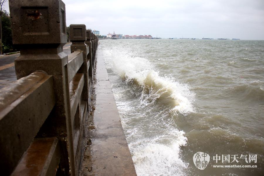 海浪拍打着海堤(摄影:林健文)