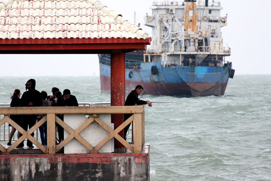 渔船被海浪拍打着(摄影:林健文)