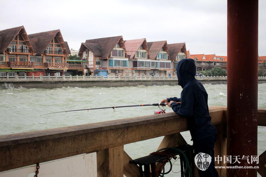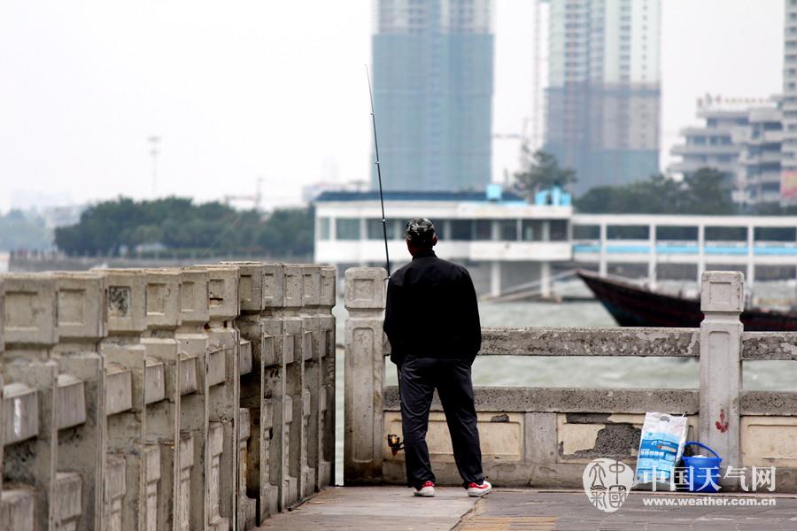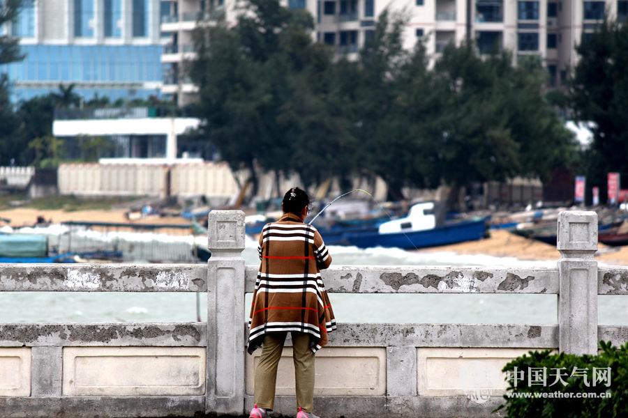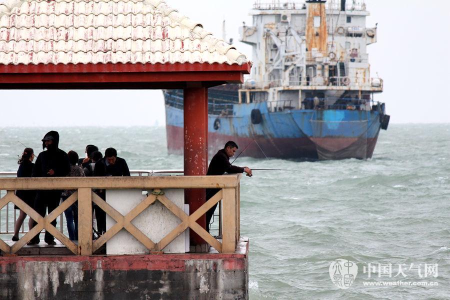 在海边冷风中坚持海钓的人(摄影:林健文)