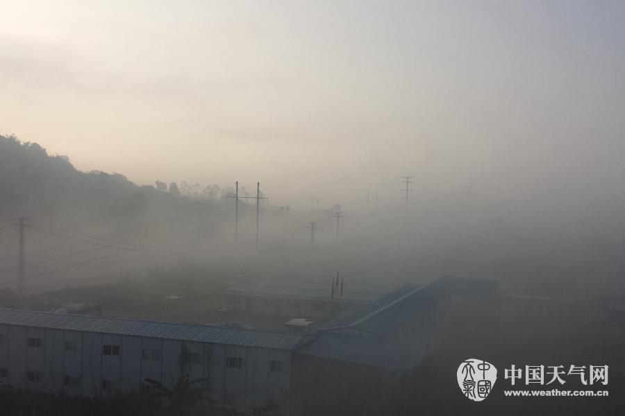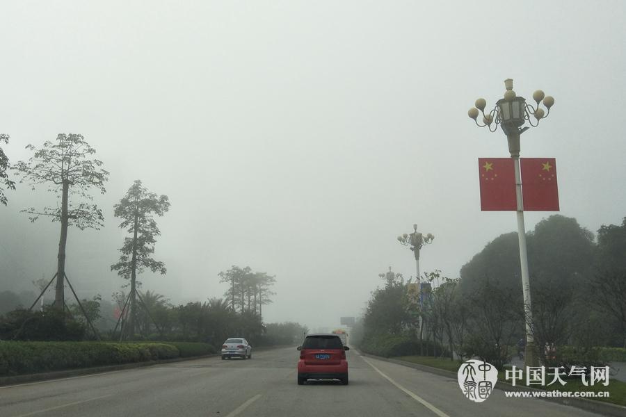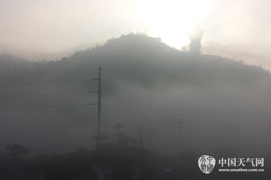 太阳在浓雾中冉冉升起(摄影:覃瑞丹)