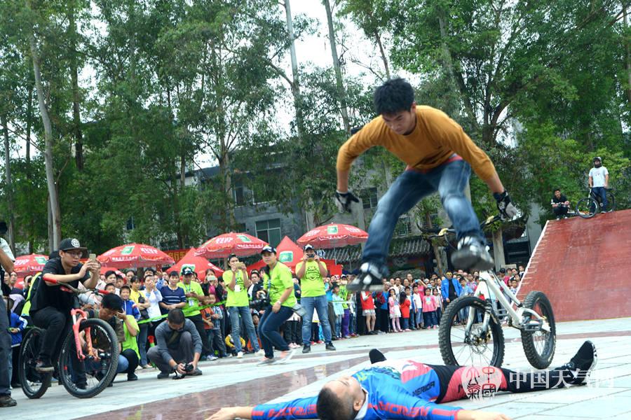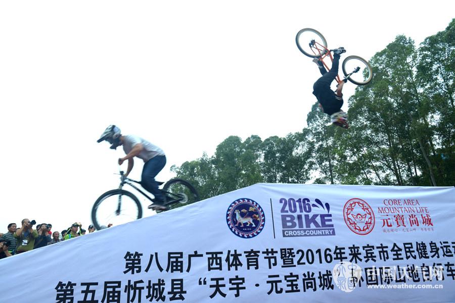 第五届忻城县“天宇•元宝尚城”杯国际山地自行车越野公开开幕式上车技表演
