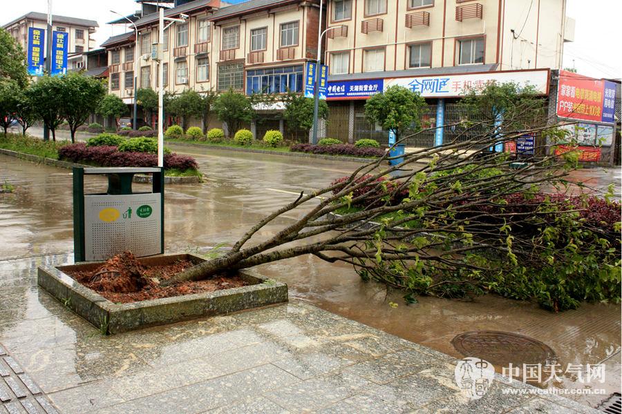 街道旁连根倒下的树木(摄影:李陶桂)