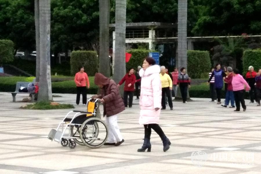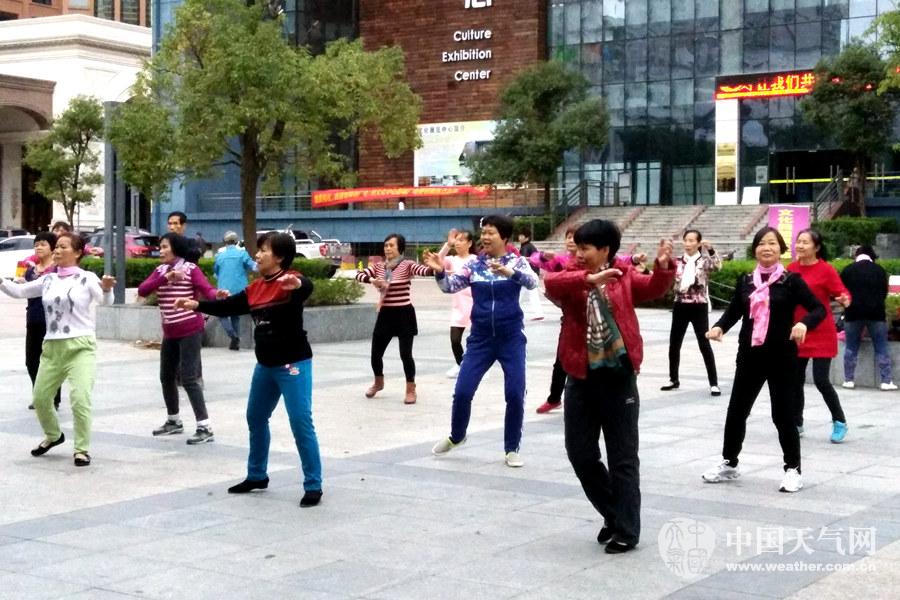 穿着毛衣和棉服晨练的市民(摄影:梁文希)