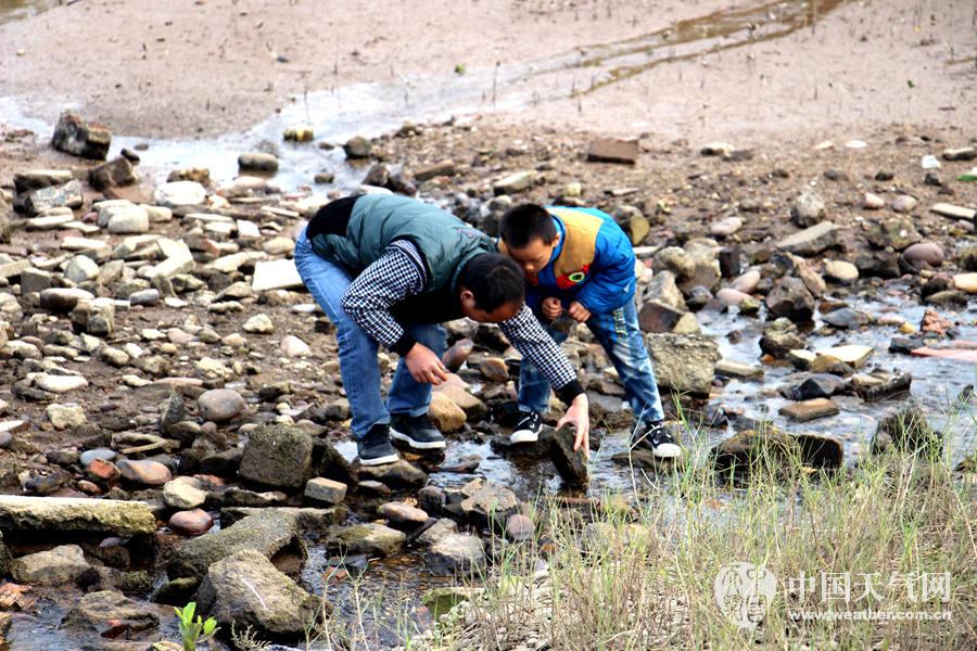父子俩石下摸蟹(摄影:潘一铭)