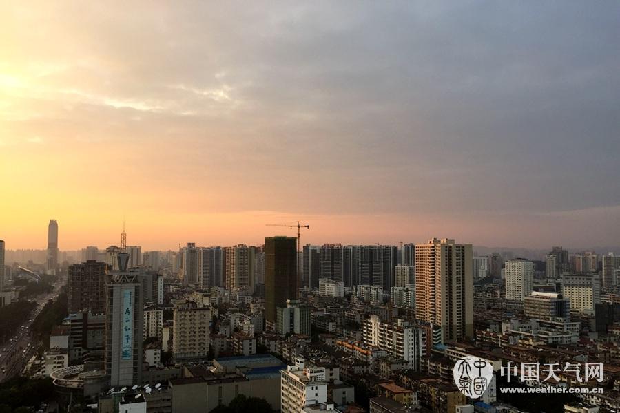 美丽晚霞渲染了城西边的天空(摄影:唐晓珊)